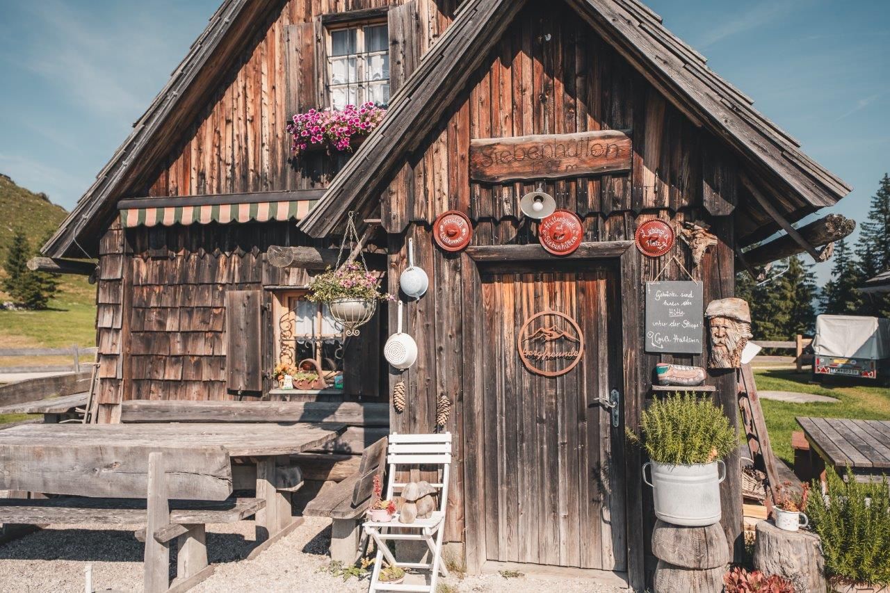 Ursprünglich standen sieben einzelne Almhütten auf diesem Platz am östlichen Rücken des Königsbergs, daher der Name Siebenhütten. In idyllischer Umgebung auf 1.297m empfängt die Alm die Gäste mit Kinderspielplatz und südseitigem Ausblick. Sie gilt als Treffpunkt für Wanderer, Mountainbiker und Genießer, die die Gemütlichkeit und Urtümlichkeit suchen. Der kurze Aufstieg vom Parkplatz und die Möglichkeit der Überschreitung des gesamten Königsberges mit Ausblick auf Voralpe, Haller Mauern, Sengsengebirge bis hin zum Dachsteinmassiv laden zum Besuch ein.