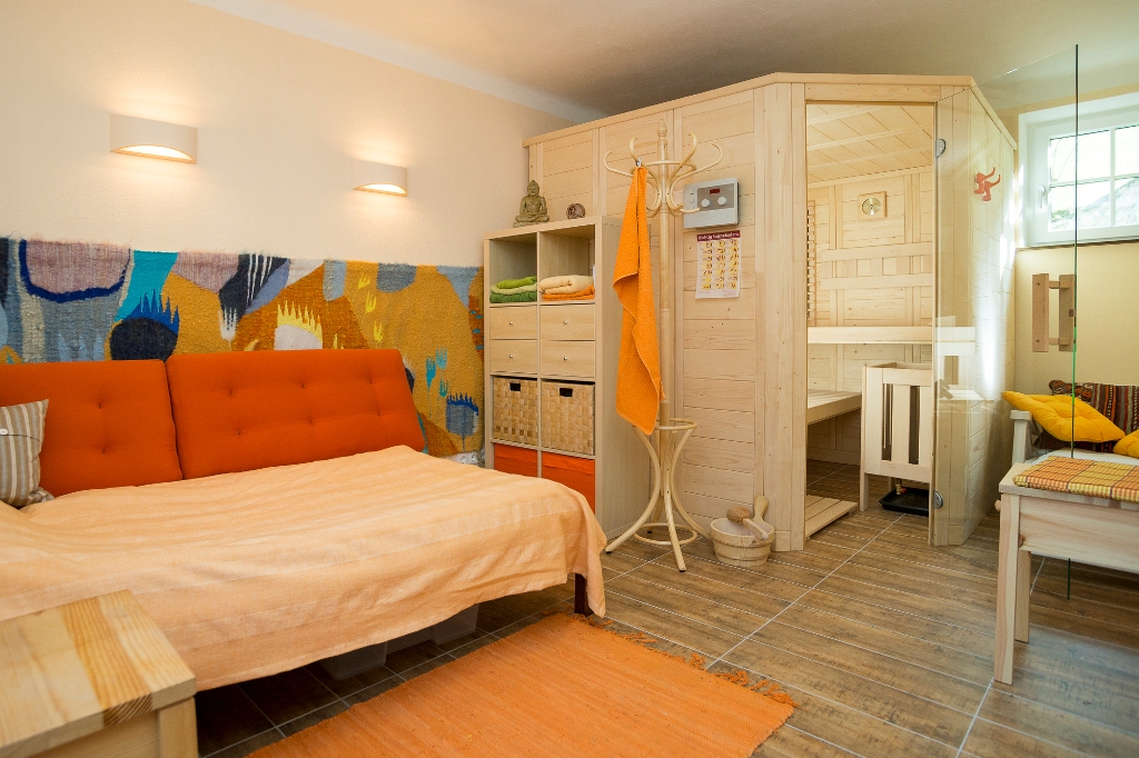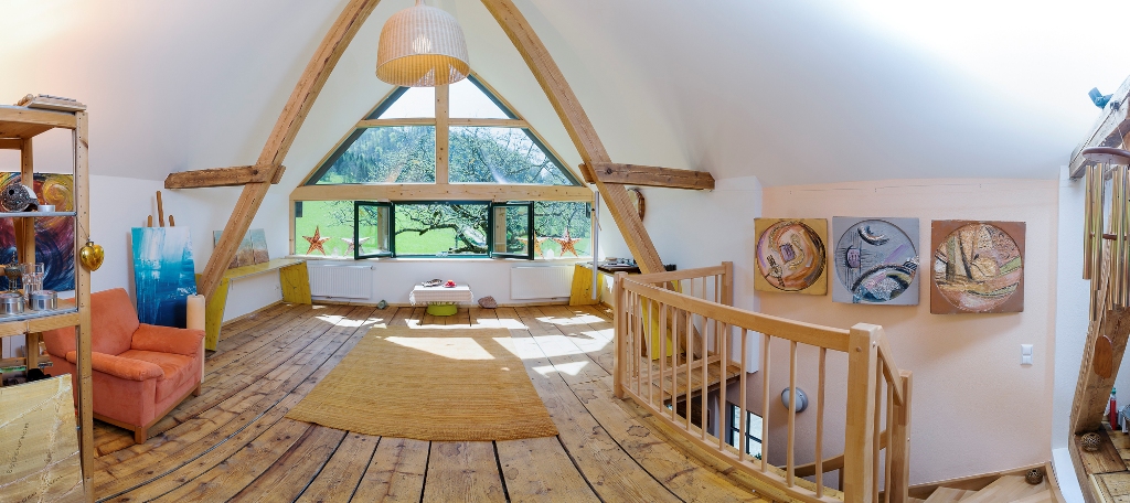 2014 wurde der alte Heustadl und Unterstand für Kuh und Schwein umgebaut: Dem Namen entsprechend wurde das Gebäude von Malerin und Energetikerin Hanni Reichlin farbenfroh eingerichtet.